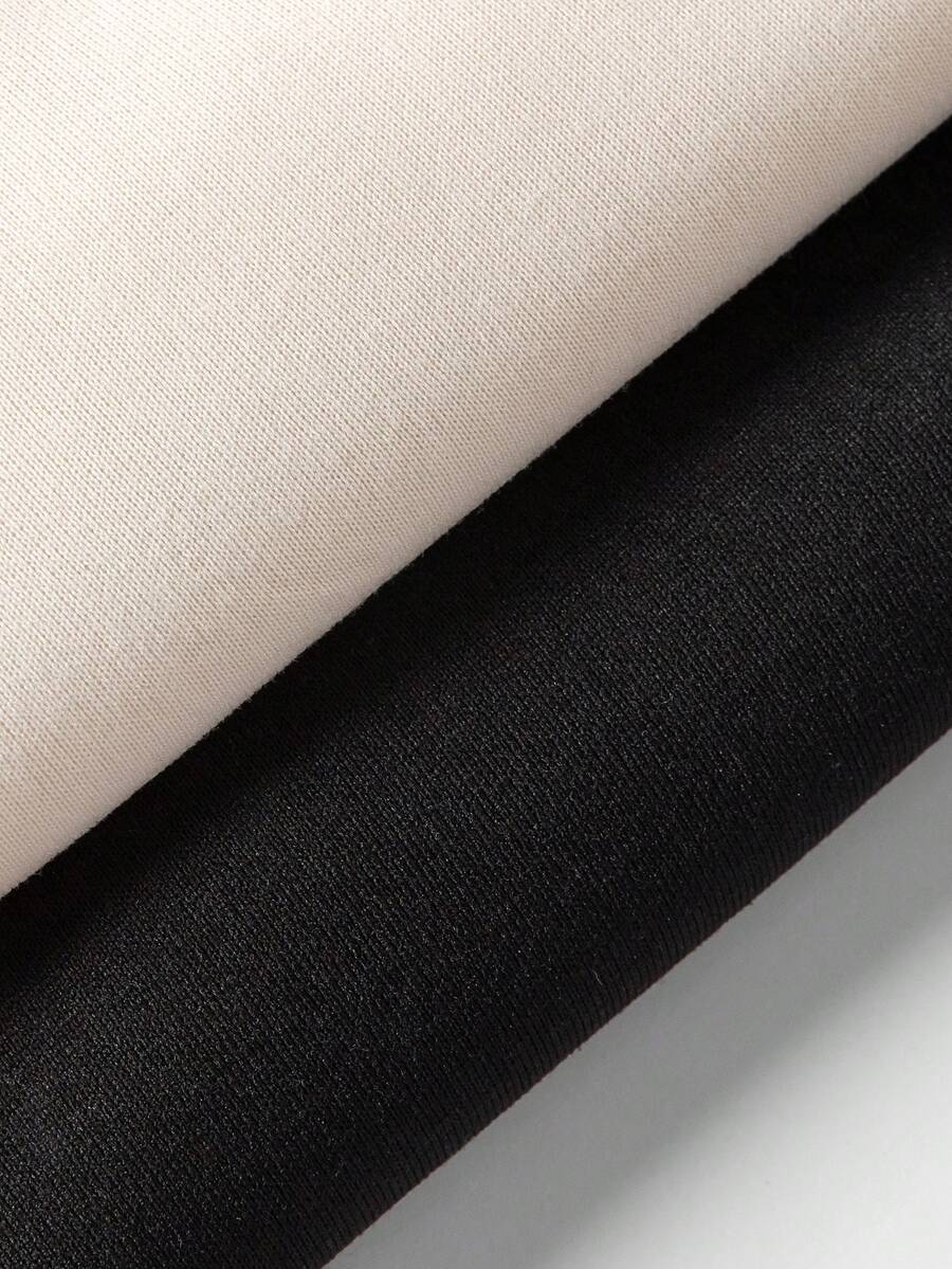 2pcs Letter Graphic Kangaroo Pocket Drawstring Thermal Hoodie