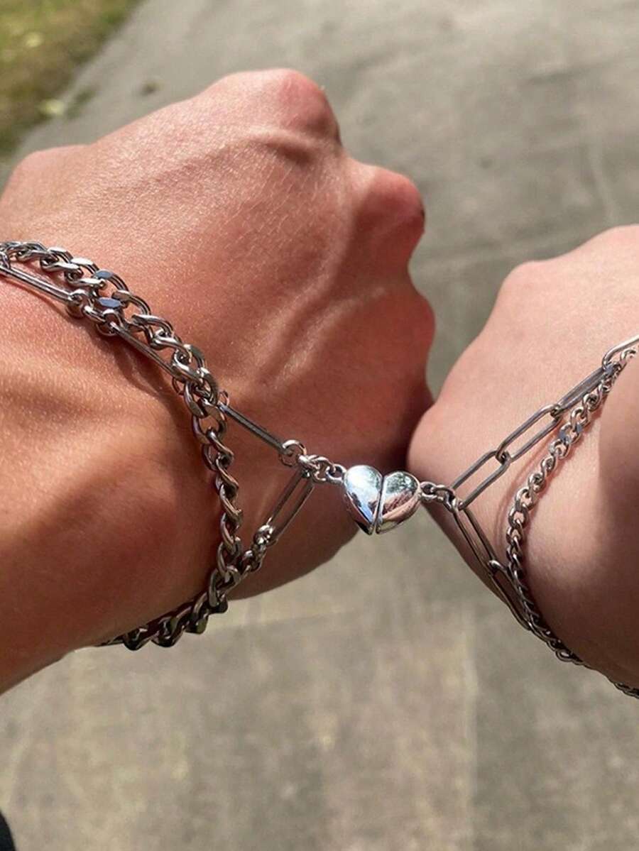 2pcs Magnetic Therapy Couple Bracelet With Heart Charm