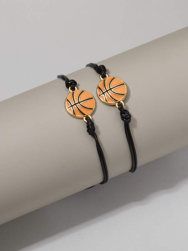 2pcs Men Basketball Decor Bracelet Punk Hip Pop Style