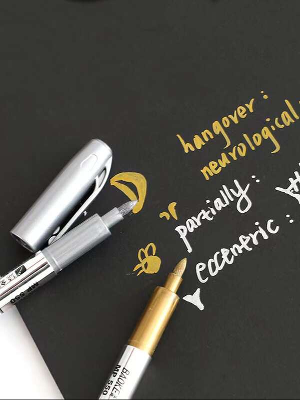 2pcs Metallic Color Craft Pen Signature Pen Gold/silver Marker Pen Large Capacity Single Head Paint Pen
