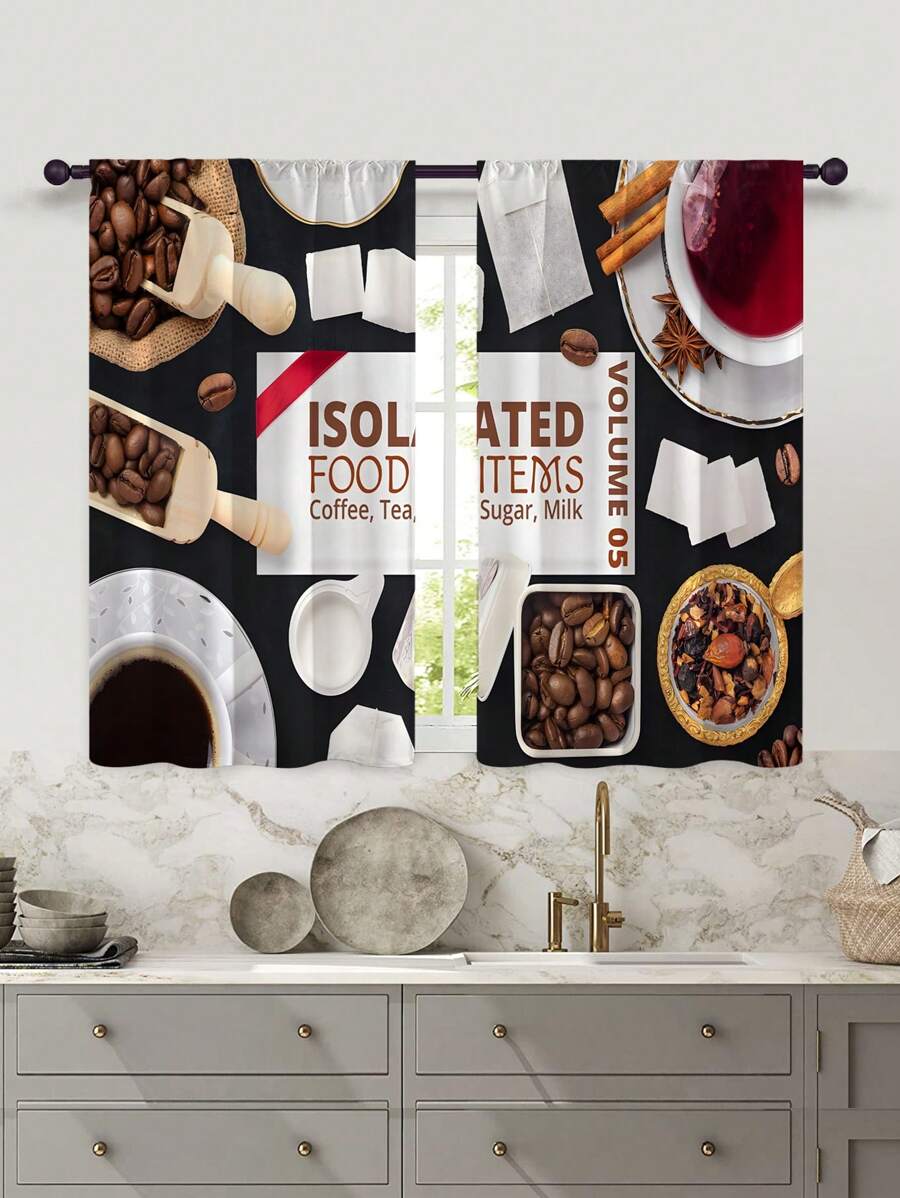 2pcs New Digital Printed Kitchenware Theme Home Decor Rod Pocket Kitchen Curtains