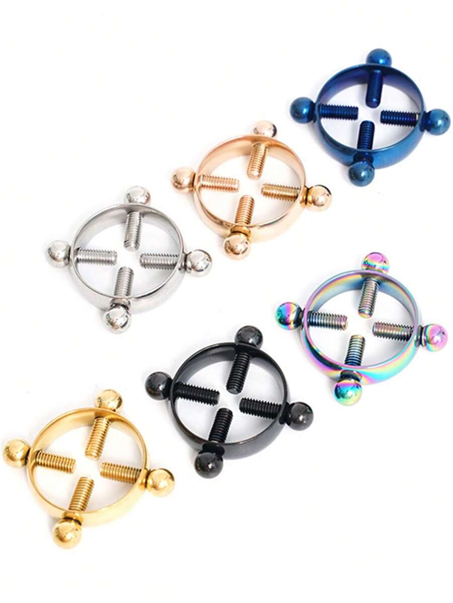 2pcs Non Piercing Nipple Ring Screw Shield Fake Piercing Stainless Steel Nipple Clip For Women Sexy Body Jewelry