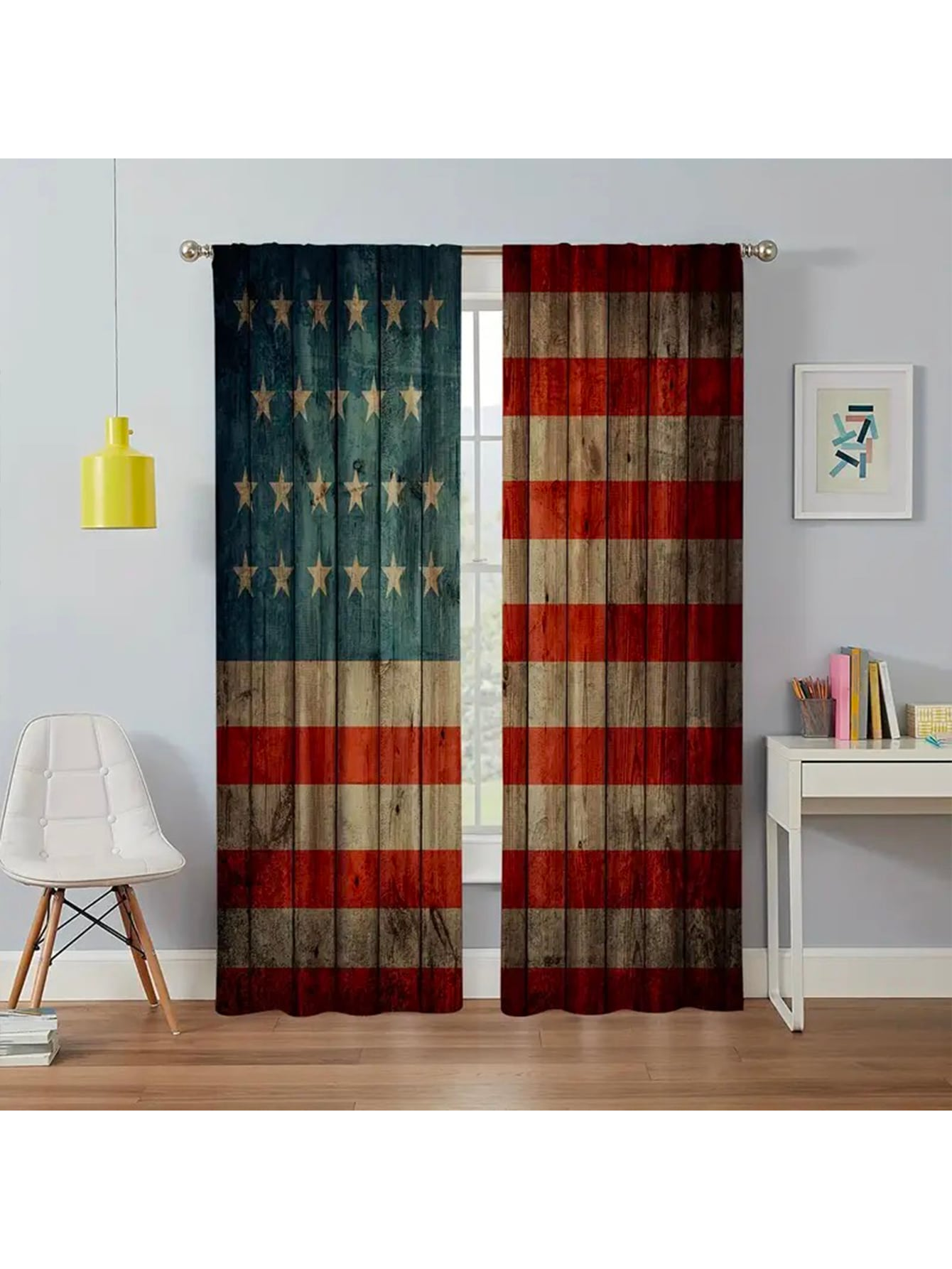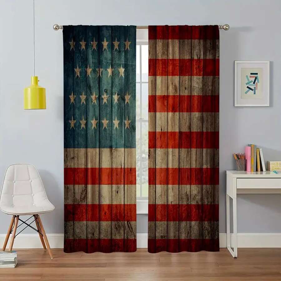 2pcs Panel Vintage Logo Printed Curtains, Home Decoration Curtains