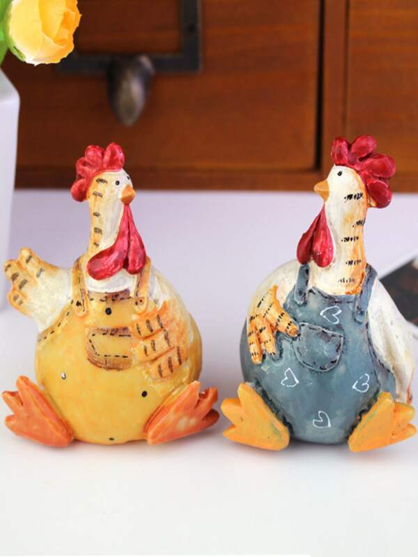 2pcs Polyresin Decoration Craft, Rooster Design Decoration Object For Home