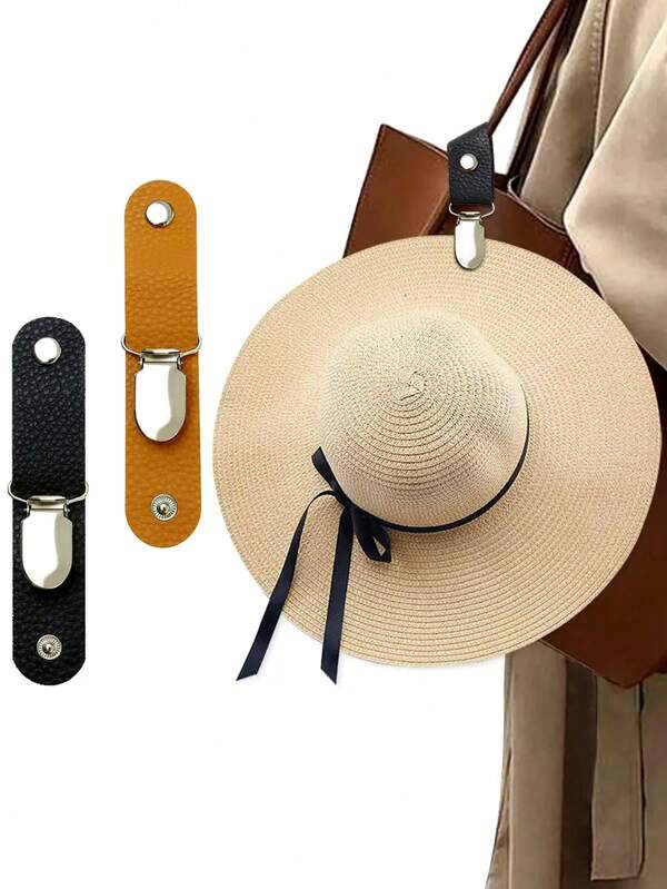 2pcs Portable Leather Cap Clips Hat Organizer Clothing Hanger, Suitable For Traveling And Outings