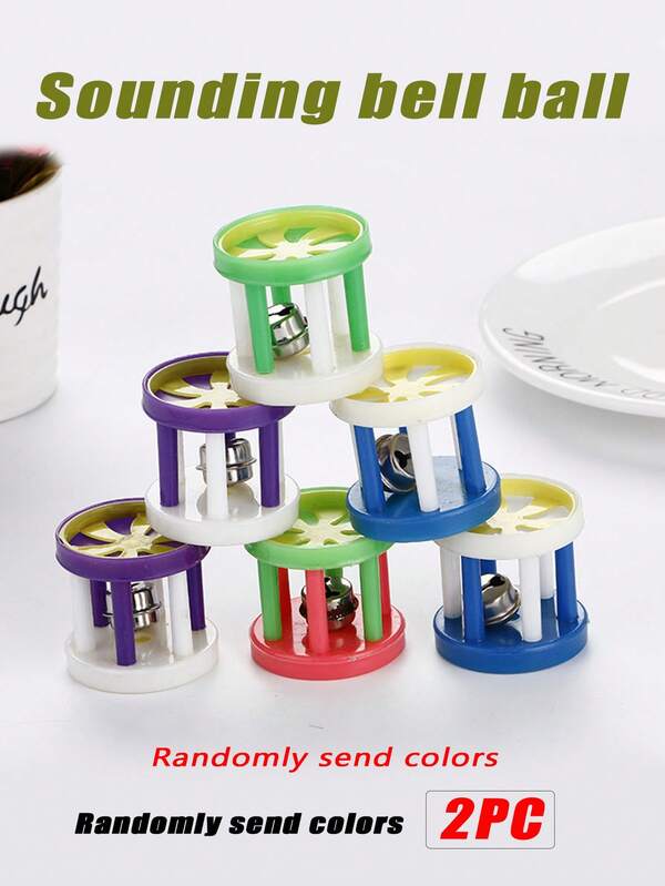2pcs Random Color Plastic Bell Ball With Wheel Shape Design Pet Toy