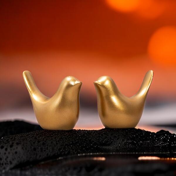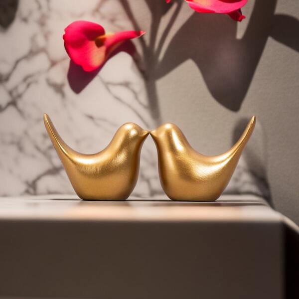 2pcs Resin Craft Golden Bird Shaped Home Decoration Ornaments For Living Room, Dining Room, Bedroom, Study, Office, Bathroom Etc.