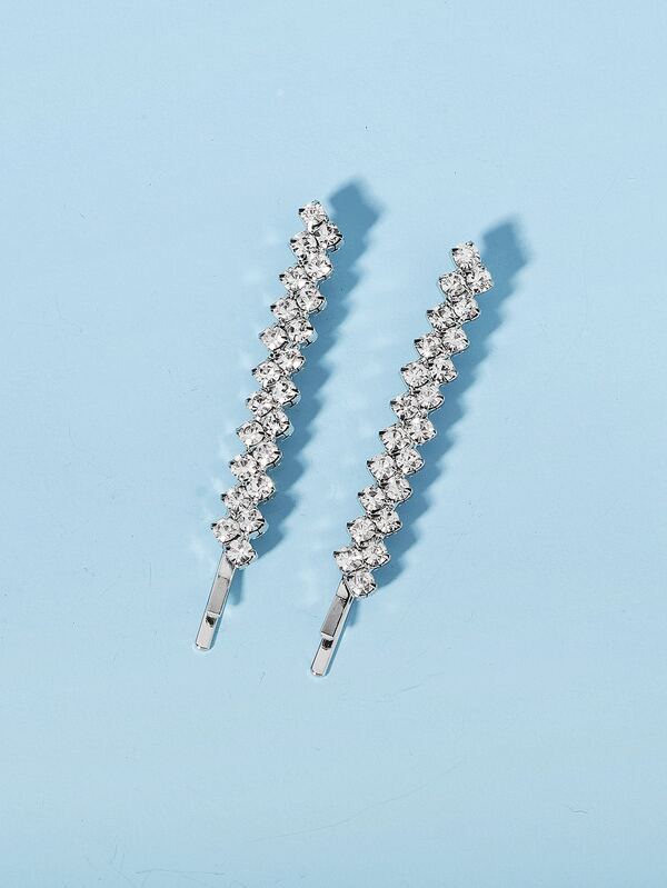 2pcs Rhinestone Decor Hair Clip