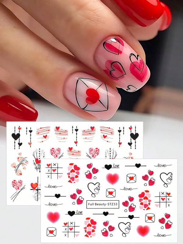 2pcs Romantic Red Love Letter Lovers Nail Water Stickers, Valentine'S Day Gift Love Heart Line Decoration Nail Art Decals Water Transfer Sliders Tattoo Manicure (Without Viscosity)