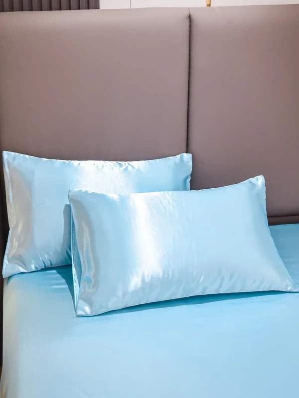 2pcs Satin Solid Color Pillowcase, Soft Pillow Cover With Envelope Closure For Bedroom, Bedding Supplies