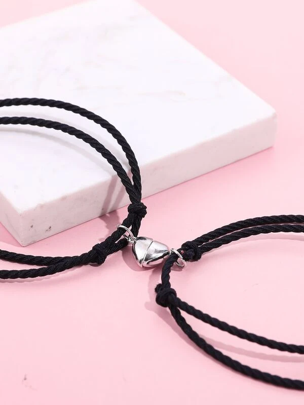 2pcs Simple New Style Magnet Attraction Love Heart Couple Bracelets For Students