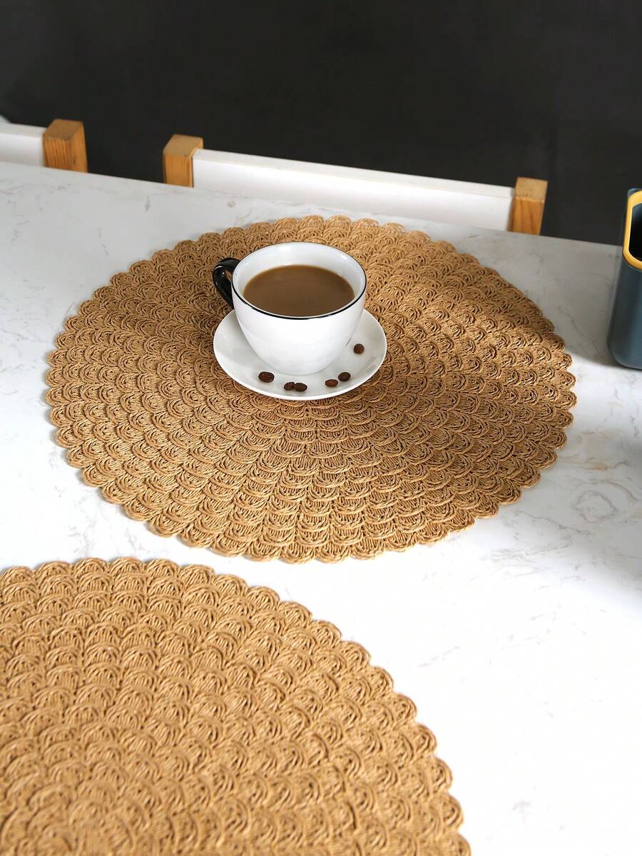 2pcs Simple Style Camel Flower Shaped Insulated Placemat For Home Kitchen, Dining Room, Restaurant, Hotel, Farmhouse, Country Style Party Decoration, Wedding, Banquet, Centerpiece, Natural Material
