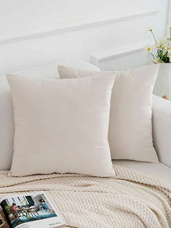 2pcs Solid Cushion Cover Without Filler, Simple Plain Color Fabric Decorative Cushion Cover For Bed, Sofa