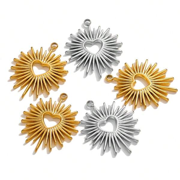 2pcs Stainless Steel Launch Heart Necklace Pendant DIY Earrings Jewelry Accessory Making