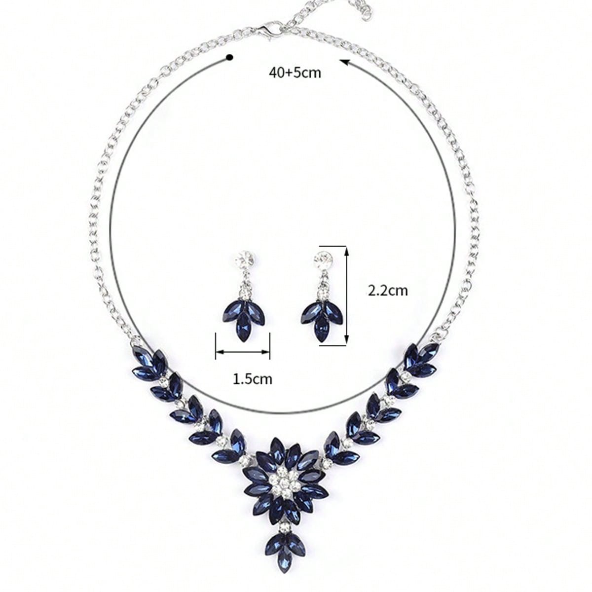 2pcs Stylish And Elegant Vintage Blue Drop Flower Necklace And Earring Set Along With A Pearl Collarbone Chain Set And Rhinestone Earrings For Formal Occasions Like Weddings, Dinner Parties To Accessorize Outfits And Make A Fashion Statement In Colors Of Red, White And Green For Women