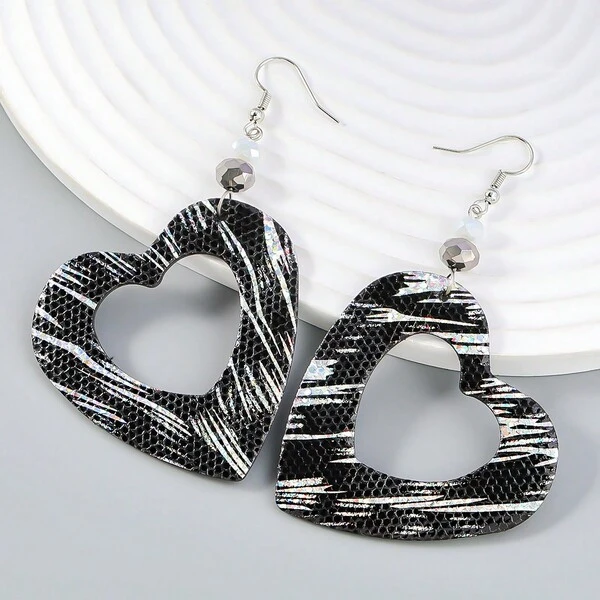 2pcs Stylish Faux Leather Heart Shaped Hollow Out Hook Dangle Earrings Make A Perfect Gift.