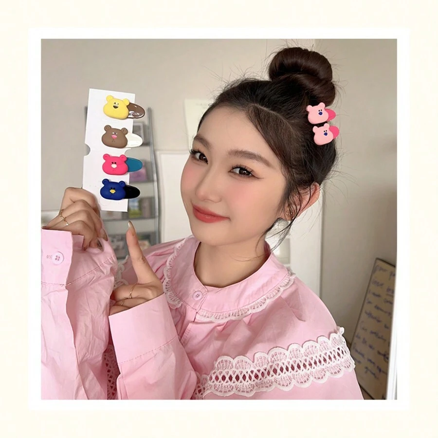 2pcs Sweet Candy Color Bear Broken Hair Clip Headdress Cute Girl Bangs Clip Small Side Clip Side Beak Clip