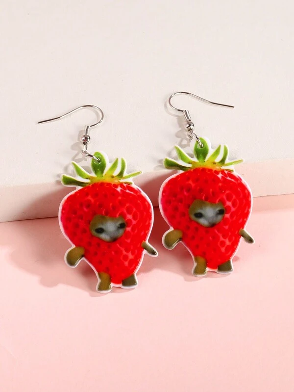 2pcs Unique Acrylic Earrings With Goldfish, Strawberry And Cat Designs For Women'S Casual & Party Wear