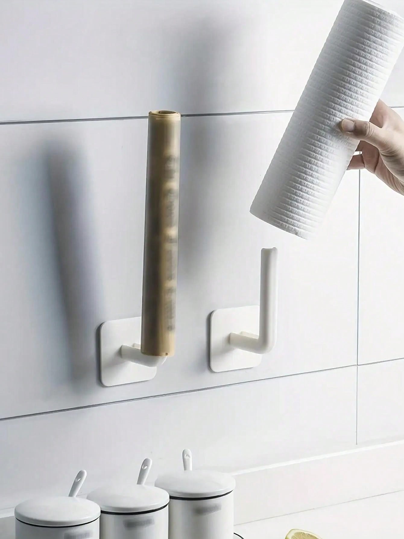 2pcs Wall-mounted Holder For Cling Film, Paper Roll, Pot Lid, And Cutting Board, No Drilling Required