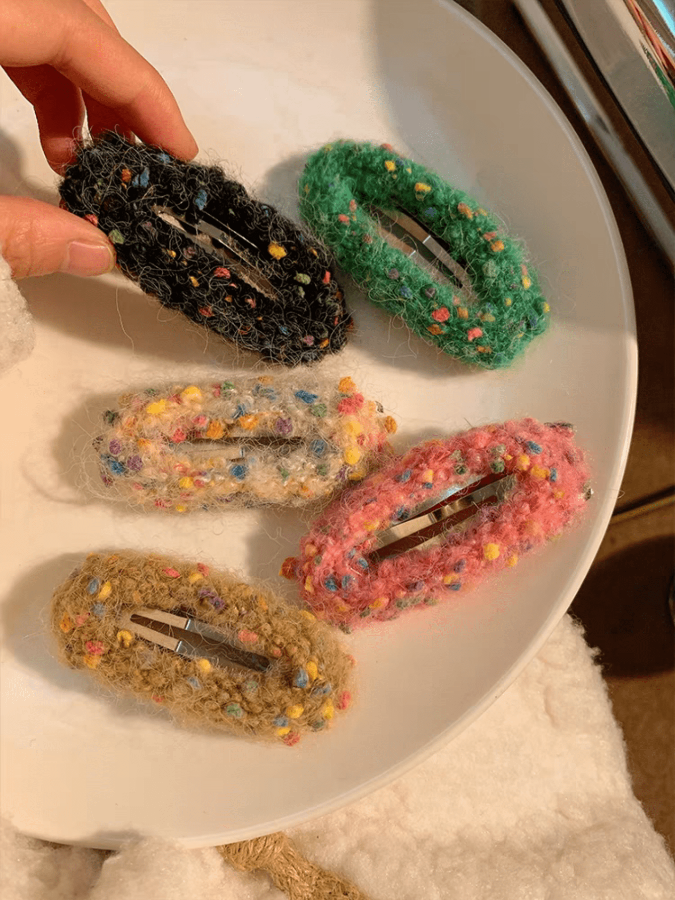 2pcs Women'S Colorful Plush Wool Knitted Hair Clip, For Bangs, Sweet & Cute, Perfect For Daily Wear And A Variety Of Headwear In Autumn And Winter