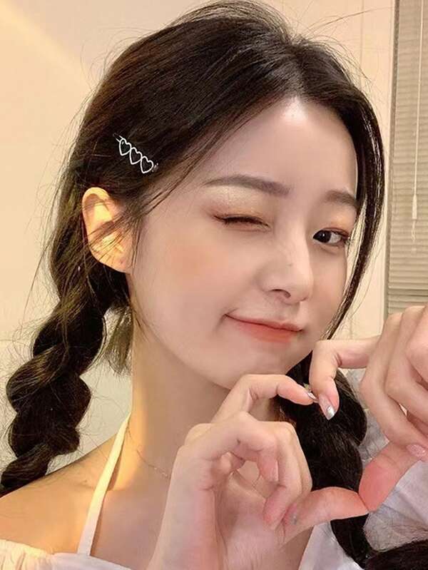 2pcs Women's Cute & Minimalist Hair Clips With Heart Decor, Perfect For Daily Use