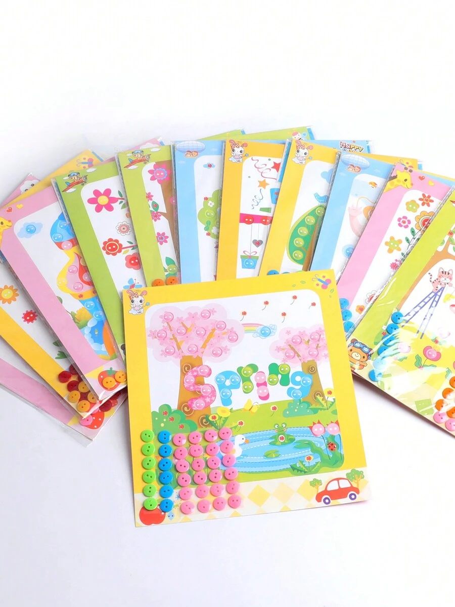 2pcs/Pack Cartoon Diy Button Mosaic Sticker Creative Puzzle Button Picture Material Set For Handmade Craft
