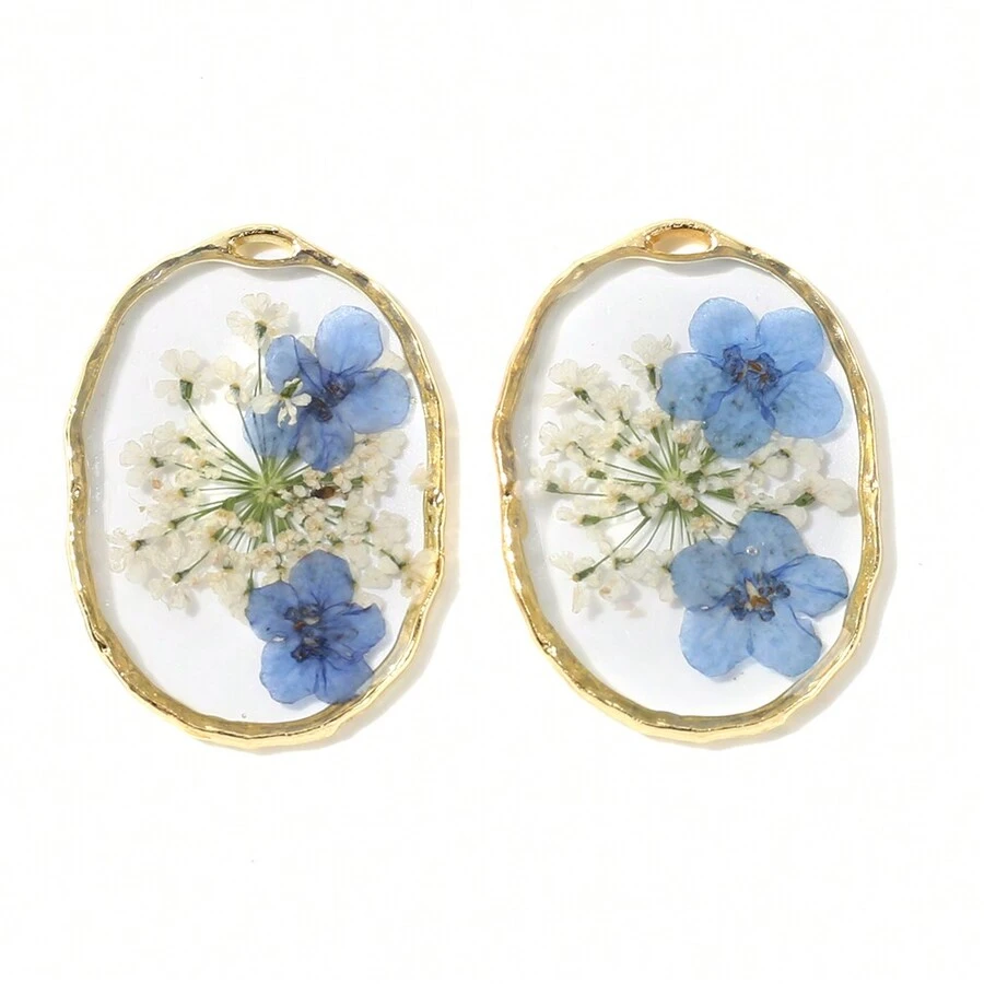2pcs/Pack Diy Handmade Clear Resin & Dried Flower Earring Accessories