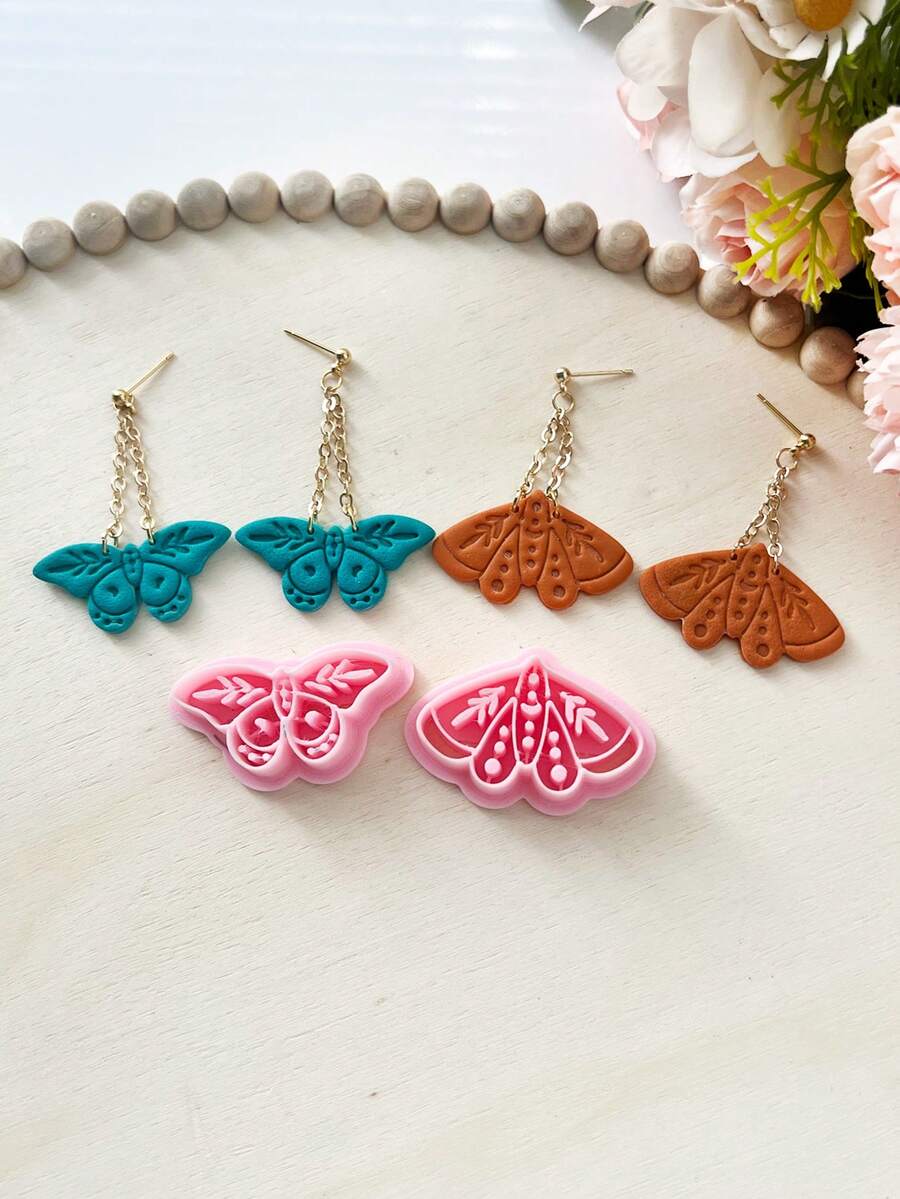 2pcs/Set, Butterfly & Moth Polymer Clay Earring Cutters,Embossing Clay Earring Cutter For Polymer Clay Jewelry Making, Polymer Clay Stud Earring Making Tool, Clay Jewelry Making Kit, DIY Earring Gift, - For Handmade Earring Making - Suitable For Beginners & Jewelry Artists, Polymer Clay Stud Earring Making Tool, Clay Jewelry Making Kit, Clay Earring Molds, Made By PLA