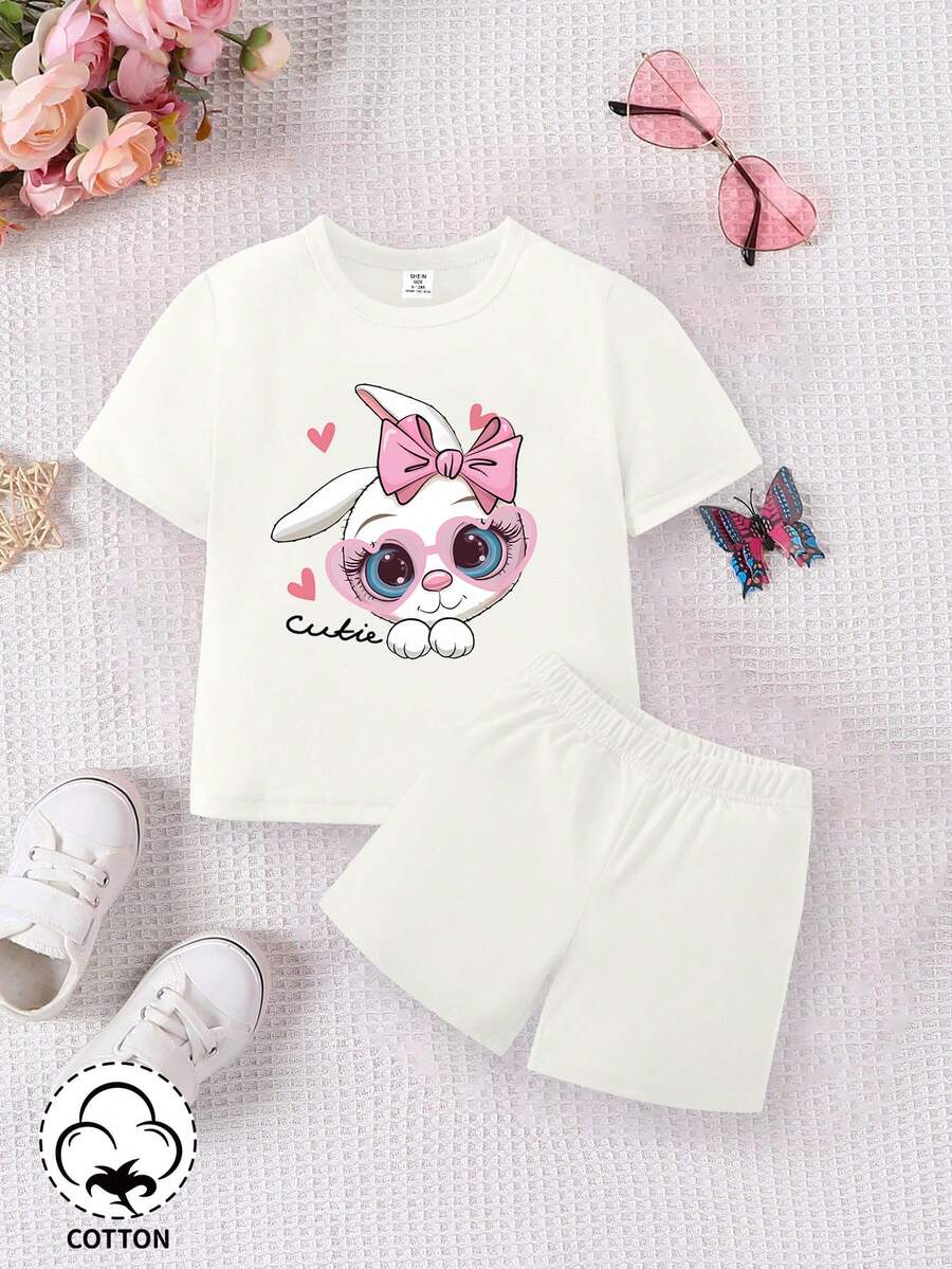 SHEIN 2pcs/Set Baby Girl Casual Daily Wear Simple Sports Outfit With Fun Pattern Print, Suitable For Spring & Summer Outdoor Activities