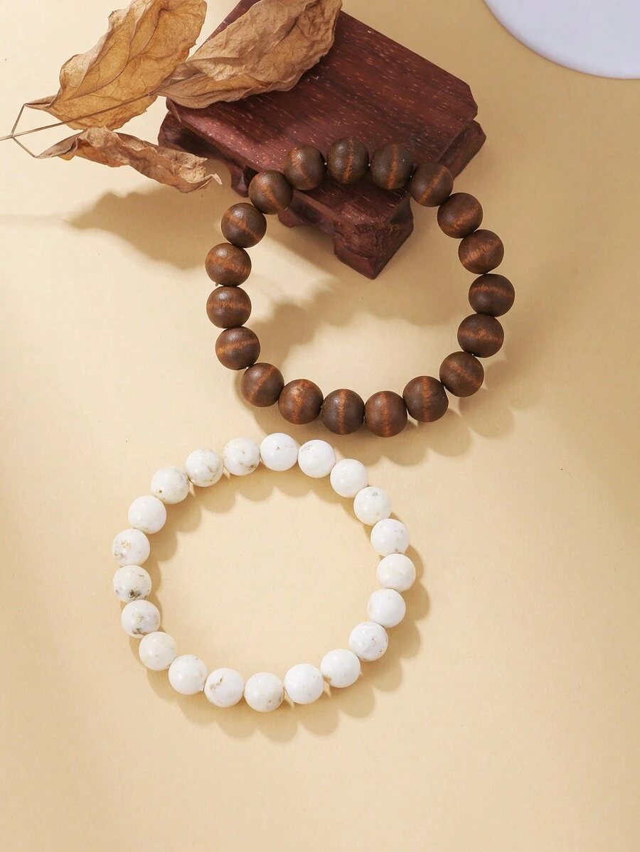 2pcs/Set Bohemian Vintage Wooden & Acrylic Beaded Bracelet Set