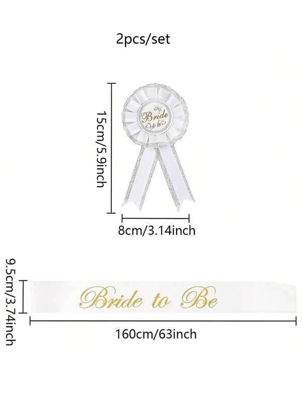 2pcs/Set Bride To Be Set, Groom & Bride Wedding Party Sash And Badge, Bachelorette Shower Decoration Accessory