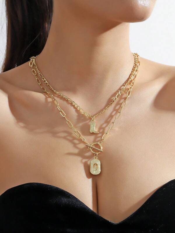 2pcs/Set Fashionable Metallic Western Cowboy Boot & Hat Pendant Necklace For Daily Wear Women