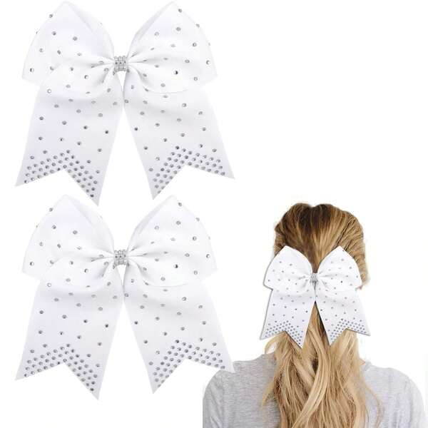 2pcs/Set Girls' 7-Inch Rhinestone Decorated Bowknot Hair Ties, Suitable For Daily Use