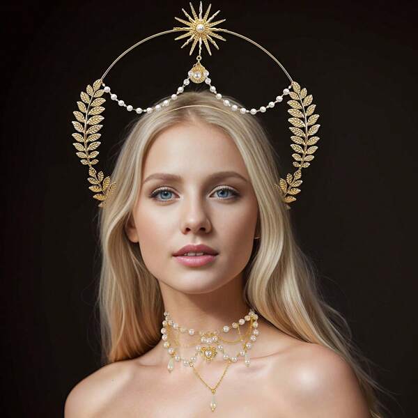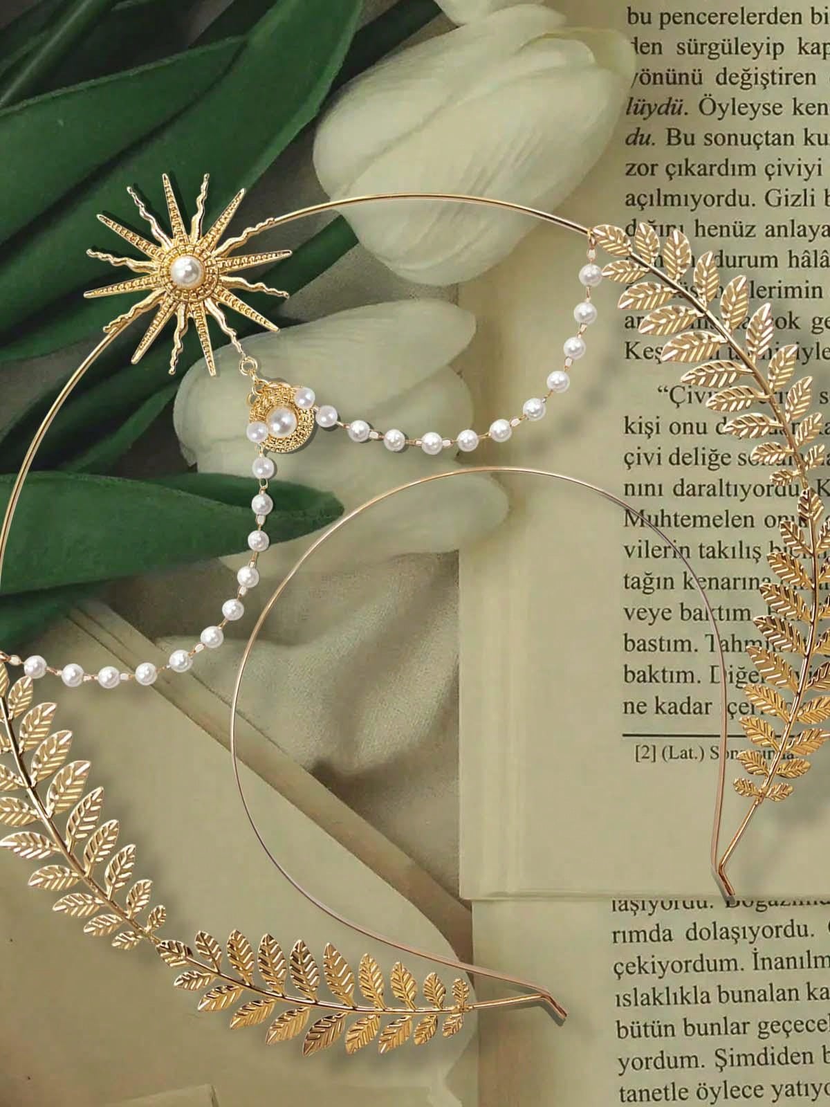 2pcs/Set Gothic-Style Crown & Bride'S Pearl Headband, Bridal Pearl Necklace With Heart & Water Drop-Shaped Pendant. Suitable For Party, Ball, Gathering & Wedding Decoration.