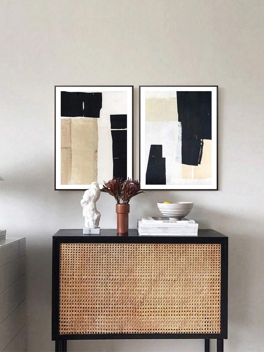 2pcs/Set High Definition Printed Canvas Posters With Black & White Block Abstract Design, Suitable For Living Room, Bedroom, Sofa Background, Foyer, Tabletop Decoration, Home Decor Wall Art, No Frame, Pvc Tube Packaging For Safety