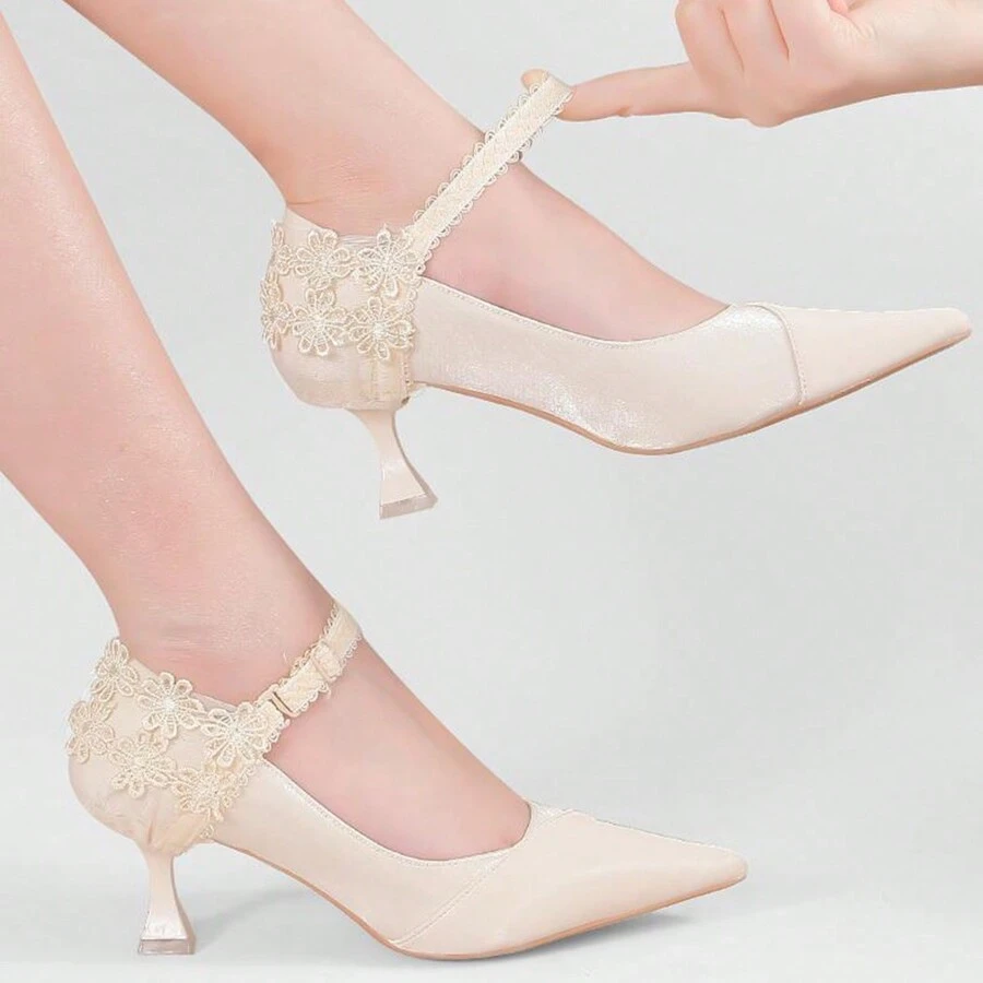 2pcs/Set High Heel Anti-Slip Lace Shoe Heel Grips With Strap And Buckle Elastic Shoelace Tying Strap