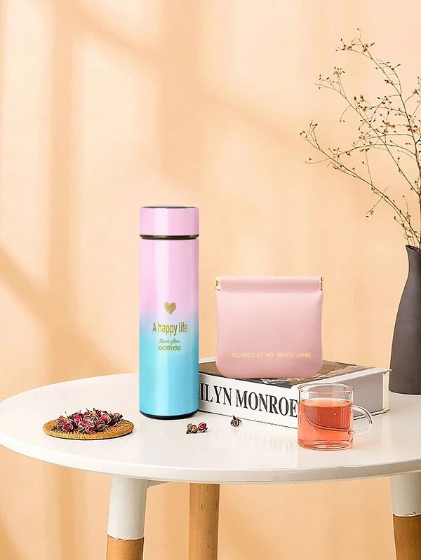 2pcs/Set Intelligent Stainless Steel Insulated Water Bottle + Lipstick Storage Bag Combo