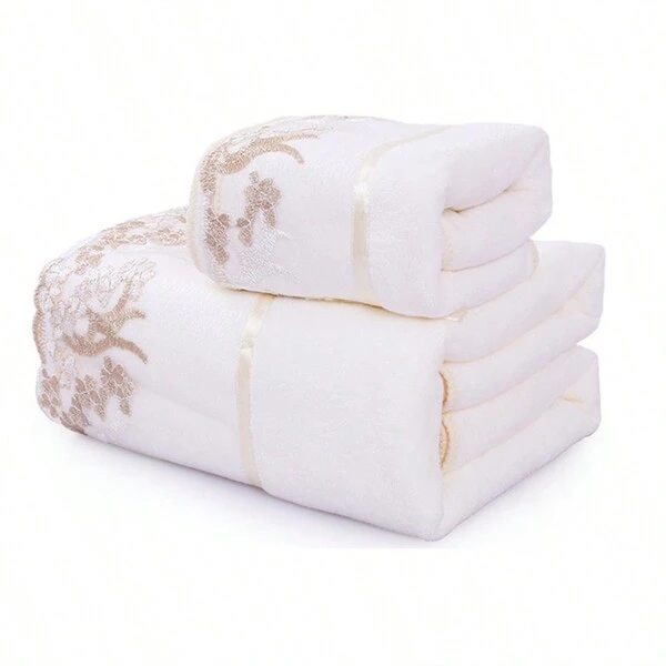2pcs/Set Lace Bath Towel & Face Towel, Oversized Ultra-Fine Absorbent Beach Towel For Adults, 1 Towel & 1 Face Towel
