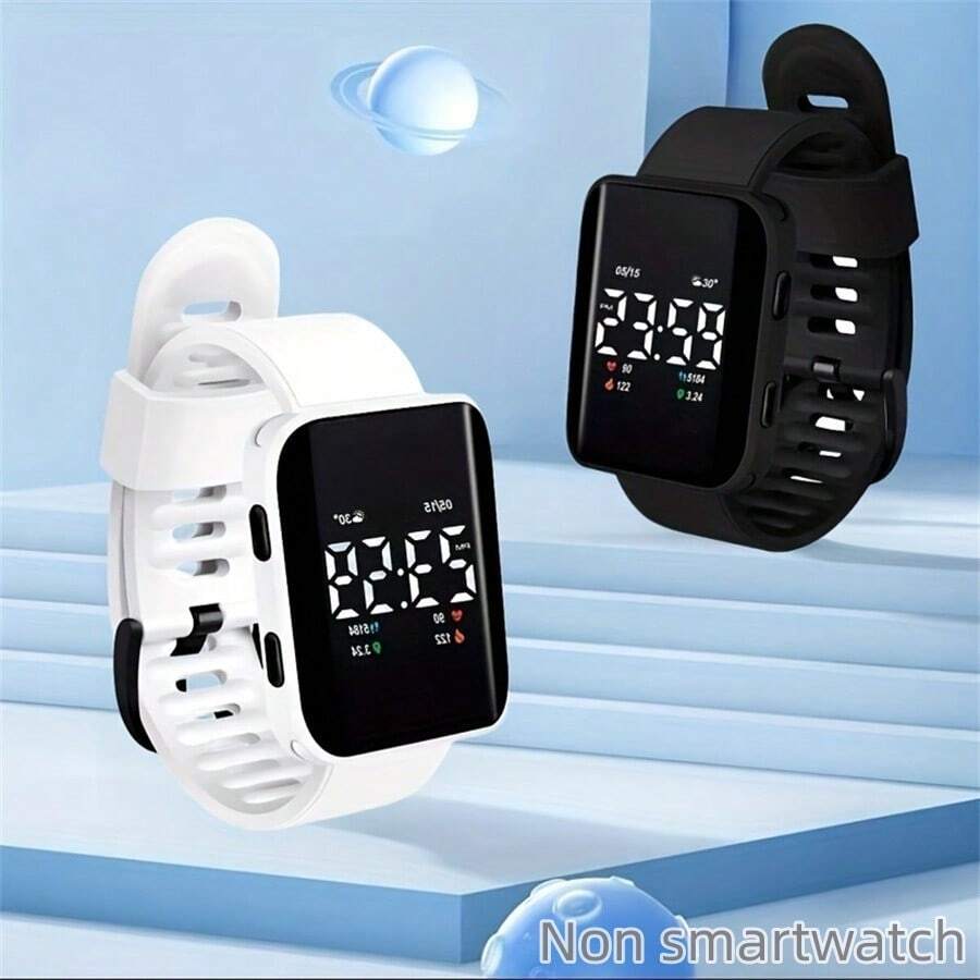 2pcs/Set Led Square Silicone Strap Men'S And Women'S Sports Watch For Couples, Digital Date Display With Night Light