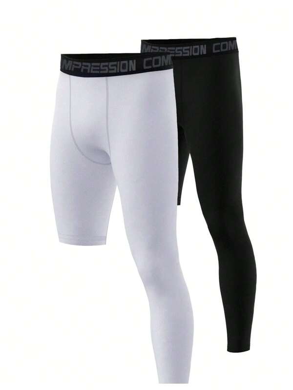 2pcs/Set Letter Print Elastic Sports Leggings With Weave Strap Detail