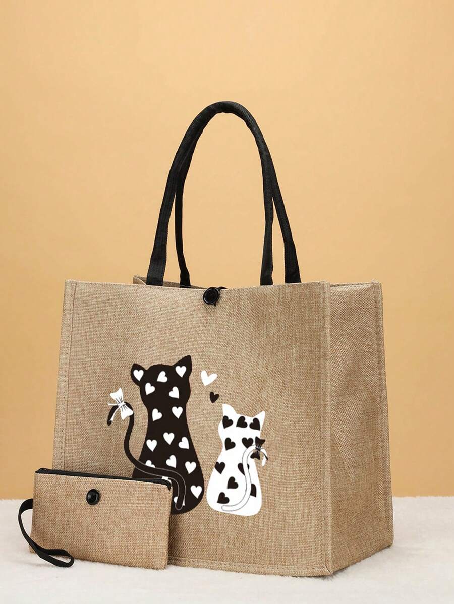 2pcs/Set Linen Alphabet Pattern Travel Tote Bag