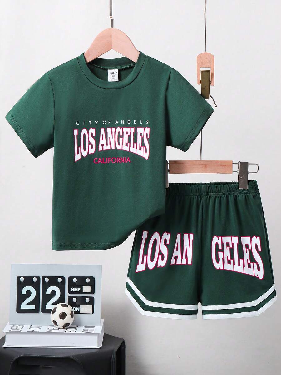 SHEIN 2pcs/Set Toddler Boys' Letter Print Short Sleeve T-Shirt And Shorts
