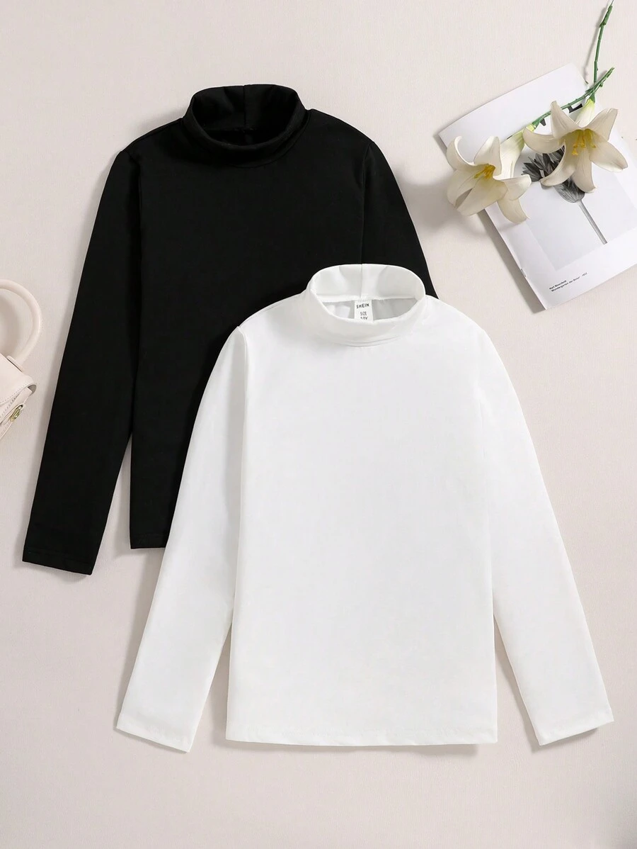SHEIN Kids Nujoom 2pcs/Set Tween Girl Elegant Slim Fit Turtleneck T-Shirt