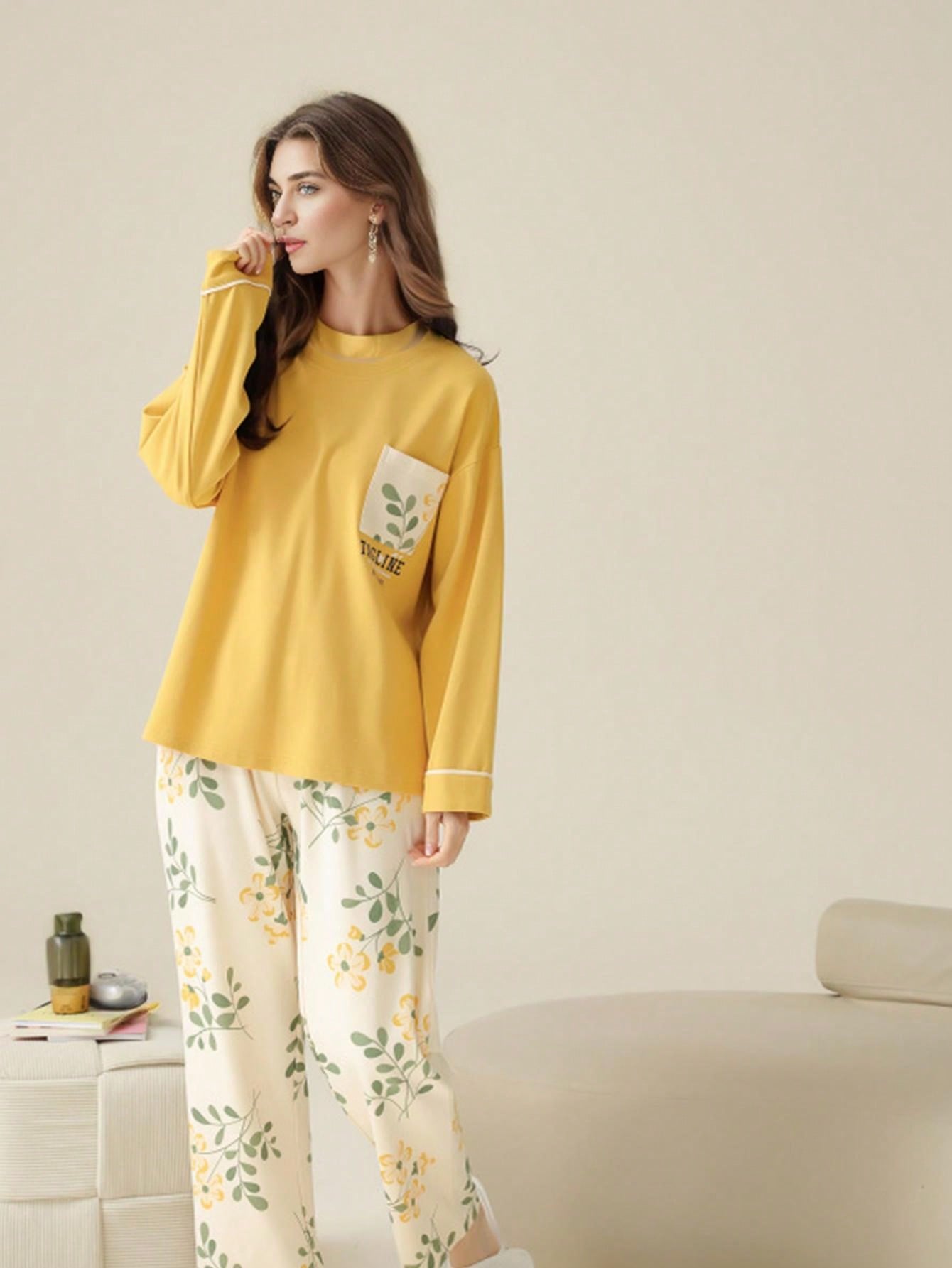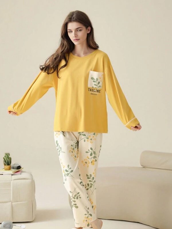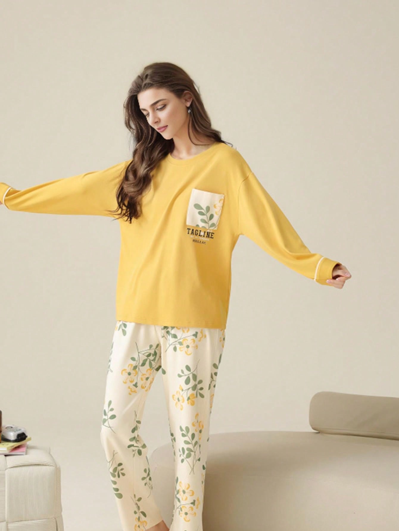 2pcs/Set Women'S Autumn Comfortable And Sweet Cute Long Sleeve Top And Pants Pajama, Suitable For Both Home Wear And Outdoor Wear
