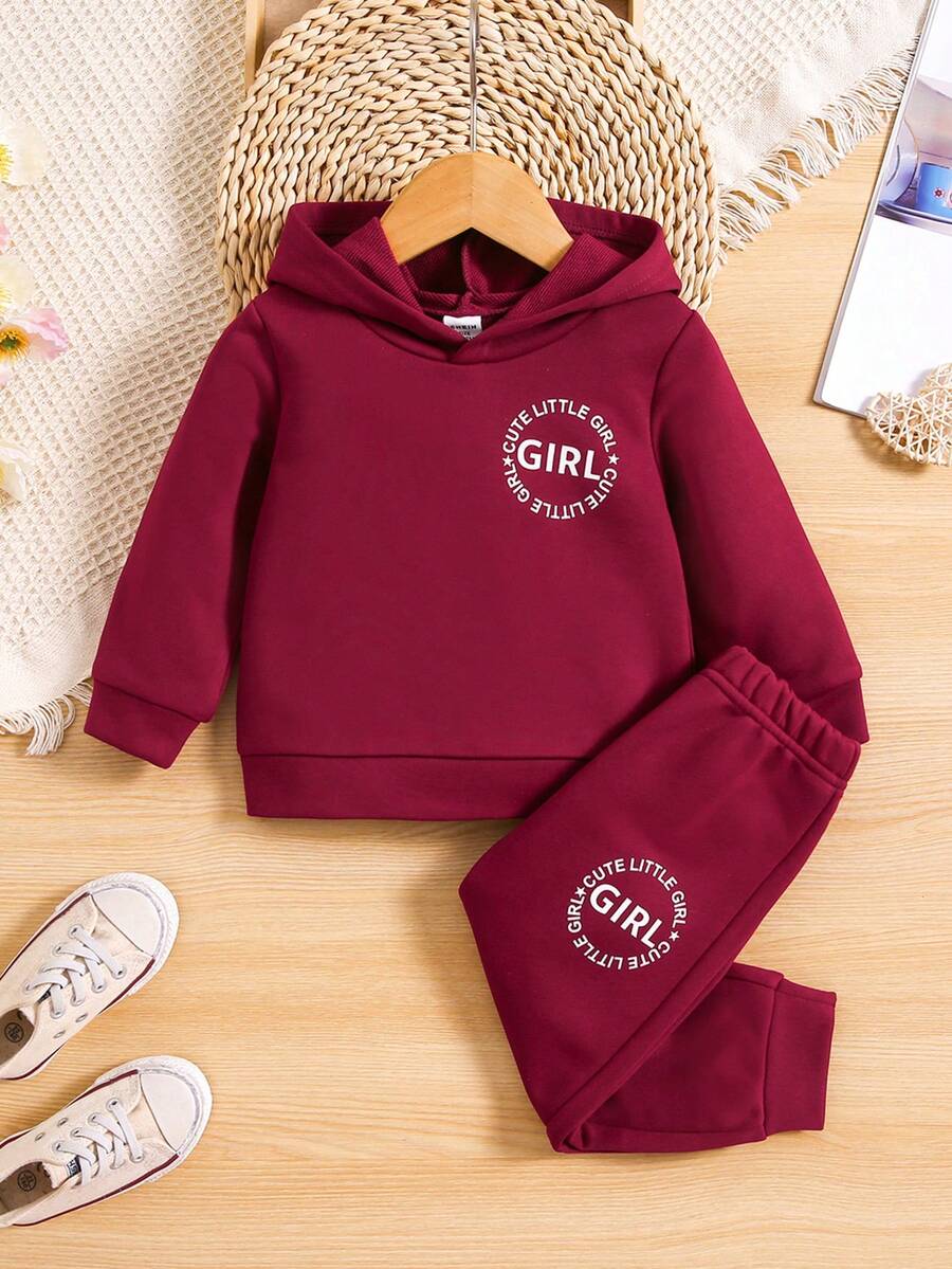 SHEIN 2pcs/set Baby Girls' Casual Sports Hooded Letter Print Long Sleeve Top And Long Pants, Autumn Outfits For Outdoor Activities