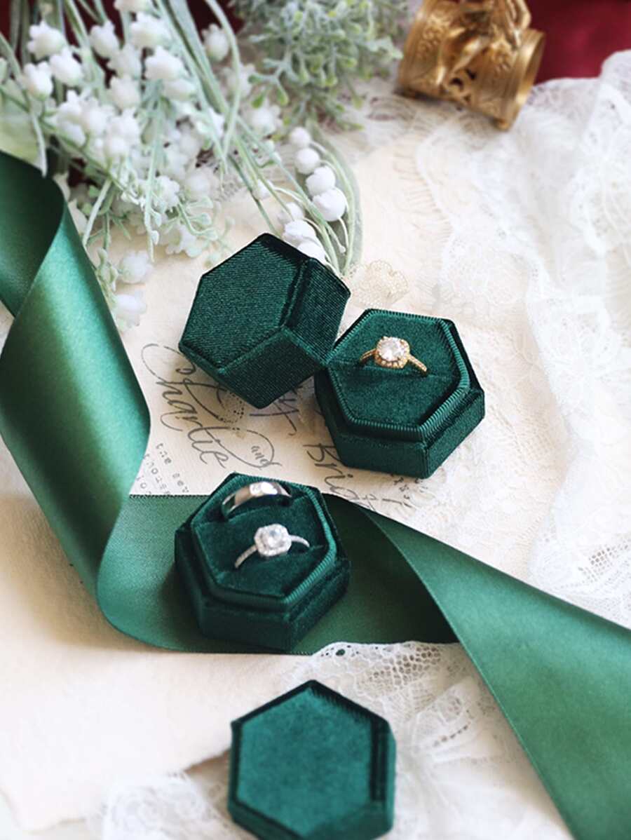 2pcs/set Fashionable Minimalist Velvet Engagement & Wedding Ring Box