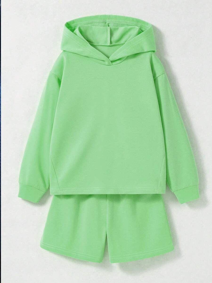 2pcs/set Little Boys' Sporty Plain Color Hooded Long Sleeve Sweatshirt And Shorts, Spring/autumn