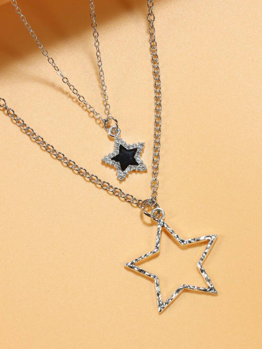 2pcs/set Punk Style Cubic Zirconia Star Pendant Necklace, Suitable For Women's Daily Wear