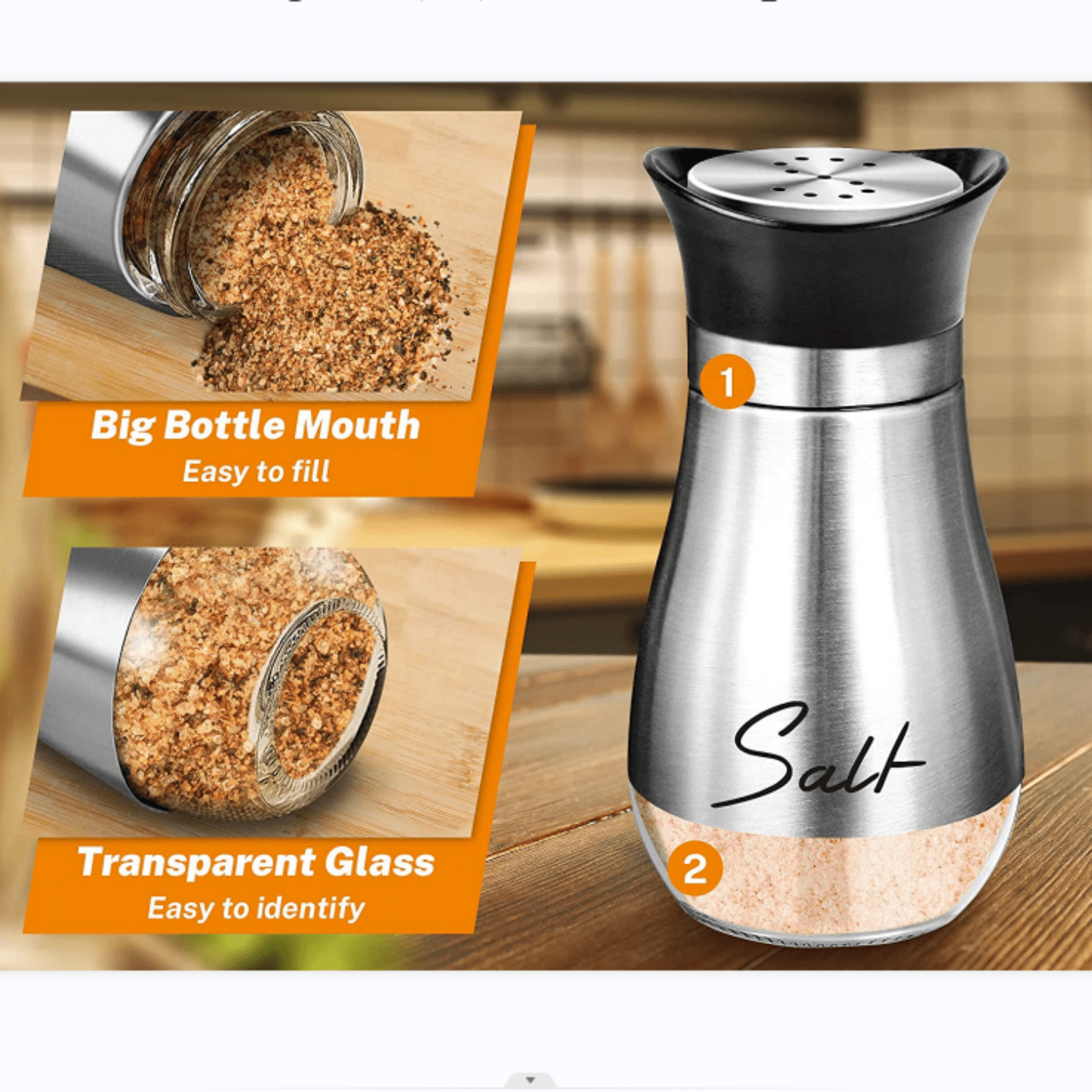 2pcs/set Salt And Pepper Shakers, 4oz Glass Bottom Canisters With Stainless Steel Tops - Refillable Design For Kitchen Cooking Table, Rvs, Camping, BBQ - Perfect Gift To Light Up Your Home Or Bring Joy To A Loved One! These Adorable Salt And Pepper Shakers With Farmhouse Canisters Are Suitable For Any Home With Vintage Or Country Decor. Convenient To Carry For Use In Kitchen, Cooking Table, Outdoor BBQ, Rvs, Camping And Picnic. Silver