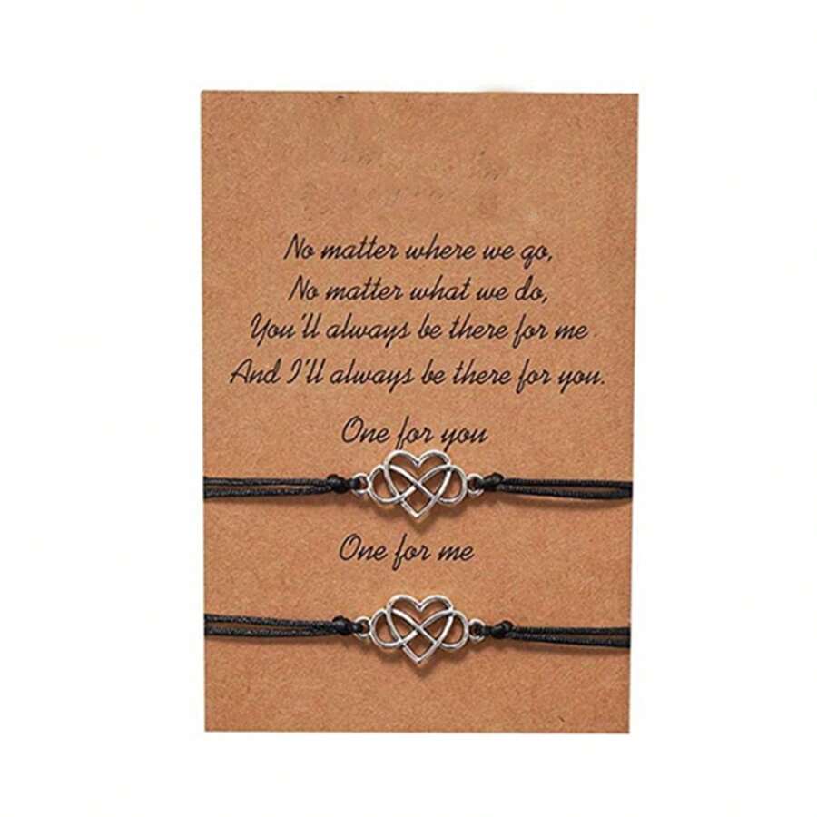 2pcs/set Simple & Fashionable Lover/friends Bracelets With Card For Party Or Date, Creative 'infinity' Symbol & Heart Shape Waxed Thread Weave Bracelets, Hand Ornament Accessory